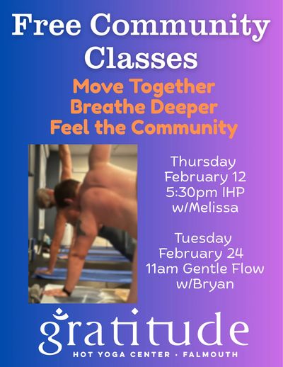 Link to Community Gentle Flow February 24: https://clients.mindbodyonline.com/classic/ws?studioid=5726847&stype=-7&sTG=27&sVT=27&sView=day&sLoc=0&date=02/24/26